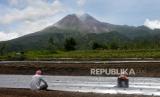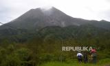 Visual Gunung Merapi terlihat jelas dari Klangon, Sleman, Yogyakarta, Kamis (27/10/2022). Hampir dua tahun status Gunung Merapi masih siaga atau sejak 5 November 2020. Sementara itu, tidak teramati perubahan signifikan kubah Barat Daya dan kubah Tengah. Untuk volume kubah lava barat daya sebesar 1,6 juta meter kubik dan kubah tengah sebesar 2,7 juta meter kubik. Potensi bahaya saat ini berupa guguran lava dan awan panas pada sektor Selatan dan Barat Daya. (FOTO : Republika/Wihdan Hidayat)