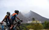 REPUBLIKA.CO.ID,YOGYAKARTA -- Pesepeda melihat visual Gunung Merapi di Klangon, Sleman, Yogyakarta, Kamis (27/10/2022).