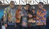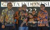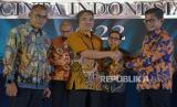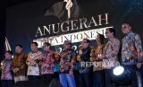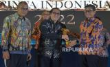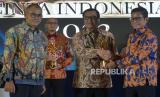 REPUBLIKA.CO.ID,JAKARTA -- Wakil Menteri BUMN Pahala Nugraha Mansury, Pemimpin Redaksi Republika Irfan Junaidi bersama penerima penghargaan berfoto bersama saat acara Anugerah Cinta Indonesia 2022 di Jakarta, Kamis (27/10/2022).