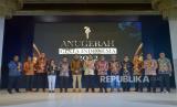 Wakil Menteri BUMN Pahala Nugraha Mansury (enam kanan), Sekretaris Kementerian BUMN Susyanto (enam kiri), Pemimpin Redaksi Republika Irfan Junaidi (kanan) berfoto bersama dengan perwakilan penerima Republika Anugerah Cinta Indonesia 2022 di Jakarta, Kamis (27/10/2022). Acara Anugerah Cinta Indonesia 2022 ini merupakan bentuk apresiasi atas keseriusan kepada perusahaan dalam penerapan penggunaan produk dalam negeri. Prayogi/Republika. (FOTO : Republika/Prayogi)