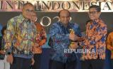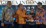 Wakil Menteri BUMN Pahala Nugraha Mansury berbincang bersama Sekretaris Kementerian BUMN Susyanto dan Pemimpin Redaksi Republika Irfan Junaidi dalam Republika Anugerah Cinta Indonesia 2022 di Jakarta, Kamis (27/10/2022). Acara Anugerah Cinta Indonesia 2022 ini merupakan bentuk apresiasi atas keseriusan kepada perusahaan dalam penerapan penggunaan produk dalam negeri. Prayogi/Republika. (FOTO : Republika/Prayogi)