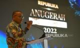 Pemimpin Redaksi Republika Irfan Junaidi memberikan sambutan dalam acara Republika Anugerah Cinta Indonesia 2022 di Jakarta, Kamis (27/10/2022). Acara Anugerah Cinta Indonesia 2022 ini merupakan bentuk apresiasi atas keseriusan kepada perusahaan dalam penerapan penggunaan produk dalam negeri. Prayogi/Republika. (FOTO : Republika/Prayogi)
