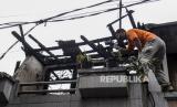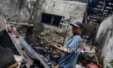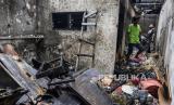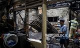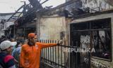 Warga melihat puing-puing sisa kebakaran di kawasan Tambora, Jakarta, Kamis (27/10/2022). Kebakaran yang menghanguskan lima bangunan berupa dua rumah konfeksi, satu rumah industri katering makanan dan dua rumah warga tersebut diduga akibat terjadinya kebocoran gas. Republika/Putra M. Akbar (FOTO : Republika/Putra M. Akbar)