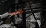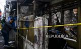 Polisi melakukan olah TKP pasca kebakaran di kawasan Tambora, Jakarta, Kamis (27/10/2022). Kebakaran yang menghanguskan lima bangunan berupa dua rumah konfeksi, satu rumah industri katering makanan dan dua rumah warga tersebut diduga akibat terjadinya kebocoran gas. Republika/Putra M. Akbar (FOTO : Republika)