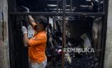 Warga mengeluarkan air dari bangunan yang hangus terbakar di kawasan Tambora, Jakarta, Kamis (27/10/2022). Kebakaran yang menghanguskan lima bangunan berupa dua rumah konfeksi, satu rumah industri katering makanan dan dua rumah warga tersebut diduga akibat terjadinya kebocoran gas. Republika/Putra M. Akbar (FOTO : Republika/Putra M. Akbar)