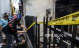 Polisi melakukan olah TKP pasca kebakaran di kawasan Tambora, Jakarta, Kamis (27/10/2022). Kebakaran yang menghanguskan lima bangunan berupa dua rumah konfeksi, satu rumah industri katering makanan dan dua rumah warga tersebut diduga akibat terjadinya kebocoran gas. Republika/Putra M. Akbar (FOTO : Republika/Putra M. Akbar)
