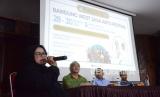 Maestro dan Pelestari Ronggeng Gunung, Bi Raspi (kiri) melantunkan salah satu tembang Ronggeng Gunung saat konferensi pers jelang Bandung West Java Arts Festival (BAF#8) yang digelar Bongkeng Arts Space bekerjasama dengan Disparbud Provinsi Jawa Barat, di Taman Budaya Jawa Barat, Kota Bandung, Kamis (27/10/2022). Acara tersebut diikuti oleh peserta dari 27 kabupaten/kota se Jawa Barat, perwakilan dari 17 provinsi dan 19 delegasi dari luar negeri. Kegiatan akan di buka di Gedung Sate dengan menampilkan 1000 penari Ronggeng Gunung. Acara berlangsung pada tanggal 28-30 Oktober 2022. (FOTO : Edi Yusuf/Republika)