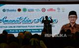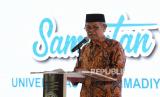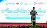 Rektor Universitas Muhammadiyah Prof Dr. Hamka (Uhamka) Gunawan Suryoputro menyampaukan sambutan saat peresmian Masjid KH Hasyim sekaligus peluncuran buku berjudul Islam Syariat : Reproduksi Salafiyah Ideologis di Uhamka, Jakarta, Jumat (28/10/2022). Penerbit Suara Muhammadiyah  kembali meluncurkan buku karya Haedar Nashir yang dibuat tahun 2005 dari hasil disertasinya saat menempuh pendidikan di UGM. Selain itu, kehadiran ketua PP Muhammadiyah tersebut juga sekaligus meresmikan Masjid KH Hisyam, Klinik Pratama dan Lagu Sang Surya dalam Versi bahasa Jepang. Republika/Thoudy Badai (FOTO : Republika/Thoudy Badai)