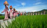 REPUBLIKA.CO.ID,TANAH DATAR -- Ibu-ibu menjunjung jamba (makanan) saat mengikuti arak-arakan, pada Festival Galundi Singkarak di Nagari Batu Taba, Kabupaten Tanah Datar, Sumatera Barat, Sabtu (29/10/2022).