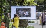 REPUBLIKA.CO.ID,JAKARTA -- Pengunjung melihat pameran foto jurnalistik bertajuk Rekam Jakarta 24+ di Taman Lapangan Banteng, Jakarta, Sabtu (29/10/2022).