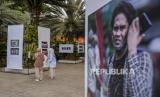 Pengunjung melihat pameran foto jurnalistik bertajuk Rekam Jakarta 24+ di Taman Lapangan Banteng, Jakarta, Sabtu (29/10/2022). Pameran foto tersebut menampilkan 149 karya yang dihasilkan oleh 53 pameris dari Pewarta Foto Indonesia Jakarta yang berlangsung hingga 6 November 2022. (FOTO : Republika/Putra M. Akbar)