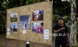 Pengunjung melihat pameran foto jurnalistik bertajuk Rekam Jakarta 24+ di Taman Lapangan Banteng, Jakarta, Sabtu (29/10/2022). Pameran foto tersebut menampilkan 149 karya yang dihasilkan oleh 53 pameris dari Pewarta Foto Indonesia Jakarta yang berlangsung hingga 6 November 2022. Republika/Putra M. Akbar (FOTO : Republika/Putra M. Akbar)