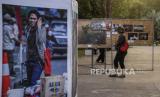 Pengunjung berdiri di dekat karya foto saat pameran foto jurnalistik bertajuk Rekam Jakarta 24+ di Taman Lapangan Banteng, Jakarta, Sabtu (29/10/2022). Pameran foto tersebut menampilkan 149 karya yang dihasilkan oleh 53 pameris dari Pewarta Foto Indonesia Jakarta yang berlangsung hingga 6 November 2022. Republika/Putra M. Akbar (FOTO : Republika/Putra M. Akbar)