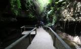 Pengunjung menyusuri Gua Jegles di Desa Keling, Kediri, Jawa Timur, Sabtu (29/10/2022). Gua alam yang terbentuk seperti rekahan tanah raksasa tersebut dikelola oleh warga menjadi obyek wisata dengan harga tiket masuk seikhlasnya guna memajukan perekonomian daerah sekitar. (FOTO : ANTARA/Prasetia Fauzani)