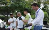 Edwin Lau bersama AXA Mandiri mempraktekkan cara mempersiapkan masakan menggunakan bahan dasar yang sehat seperti sayur dan buah.