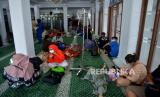 Sejumlah pasien RS Medika Permata Hijau saat dievakuasi di dalam masjid Asy-Syukur, Jalan Raya Kebayoran Lama, Jakarta, Ahad (30/10/2022). Sebanyak 28 pasien di evakuasi sebagai antisipasi dampak kebakaran yang terjadi pada kawasan pemukiman warga yang persis di belakang RS tersebut. (FOTO : Republika/Prayogi)