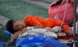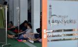REPUBLIKA.CO.ID, JAKARTA -- Sejumlah pasien RS Medika Permata Hijau saat dievakuasi di dalam masjid Asy-Syukur, Jalan Raya Kebayoran Lama, Jakarta, Ahad (30/10/2022). Sebanyak 28 pasien di evakuasi sebagai antisipasi dampak kebakaran yang terjadi pada kawasan pemukiman warga yang persis di belakang RS tersebut.