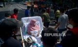 Warga membatu pasien untuk kembali ke RS Medika Permata Hijau usai dievakuasi di Masjid Asy-Syukur, Jalan Raya Kebayoran Lama, Jakarta, Ahad (30/10/2022). Sebanyak 28 pasien di evakuasi sebagai antisipasi dampak kebakaran yang terjadi pada kawasan pemukiman warga yang persis di belakang RS tersebut. (FOTO : Republika/Prayogi)