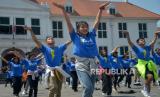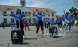 REPUBLIKA.CO.ID, Sejumlah penari melakukan flash mob dalam rangka selebrasi ajang OTW (Online Tiket Week) di area lapangan Museum Fatahillah, Kota Tua, Jakarta, Ahad (30/10/2022).