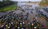 REPUBLIKA.CO.ID, BANJAR -- Sejumlah pedagang pasar terapung menjajakan dagangannya di atas perahu saat Festival Pasar Terapung Lok Baintan 2022 di Desa Sungai Pinang Lama, Kabupaten Banjar, Kalimantan Selatan, Minggu (30/10/2022).