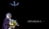 Yati S mementaskan lakon bertajuk Pagi Bening di Gedung Rumentang Siang, Jalan Baranang Siang, Sumur Bandung, Kota Bandung, Ahad (30/10/2022). Pementasan Pagi Bening karya Serafin dan Joaquin Alfarez Quintarot digelar dalam rangka memperingati Hari Ulang Tahun ke-64 Studiklub Teater Bandung. (FOTO : REPUBLIKA/ABDAN SYAKURA)
