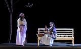 Aktris dan aktor Yati S dan Yusef Muldiyana mementaskan lakon Pagi Bening di Gedung Rumentang Siang, Jalan Baranang Siang, Sumur Bandung, Kota Bandung, Ahad (30/10/2022). Pementasan Pagi Bening karya Serafin dan Joaquin Alfarez Quintarot digelar dalam rangka memperingati Hari Ulang Tahun ke-64 Studiklub Teater Bandung. (FOTO : REPUBLIKA/ABDAN SYAKURA)