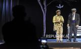 Deden Syarif dan Yusef Muldiyana mementaskan teater bertajuk Pagi Bening di Gedung Rumentang Siang, Jalan Baranang Siang, Sumur Bandung, Kota Bandung, Ahad (30/10/2022). Pementasan Pagi Bening karya Serafin dan Joaquin Alfarez Quintarot digelar dalam rangka memperingati Hari Ulang Tahun ke-64 Studiklub Teater Bandung. (FOTO : REPUBLIKA/ABDAN SYAKURA)