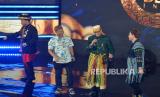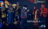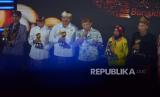 Menteri Pariwisata dan Ekonomi Kreatif Sandiaga Uno (dua kanan), Menteri Dalam Negeri Tito Karnavian (dua kiri), Wakil Menteri Desa, Pembangunan Daerah Tertinggal & Transmigrasi Budi Arie Setiadi (kiri) dan Vokalis Grup Band Armada Rizal (kanan) bernyanyi bersama disela-sela acara Malam Anugerah Desa Wisata Indonesia (ADWI) 2022 di Gedung Sapta Pesona, Jakarta, Ahad (30/10/2022). ADWI 2022 merupakan penganugerahan kepada desa wisata-desa wisata terpilih sebagai bentuk apresiasi atas keberhasilan mereka dalam mengembangkan Desa Wisata yang berkelanjutan, berdaya saing global, dan berkelas dunia. (FOTO : Republika/Prayogi)