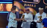 Menteri Pariwisata dan Ekonomi Kreatif Sandiaga Uno memberikan piala kepada penerima penghargaan Desa Wisata Terfavorit Desa Bulu Duri pada acara Malam Anugerah Desa Wisata Indonesia (ADWI) 2022 di Gedung Sapta Pesona, Jakarta, Ahad (30/10/2022). ADWI 2022 merupakan penganugerahan kepada desa wisata-desa wisata terpilih sebagai bentuk apresiasi atas keberhasilan mereka dalam mengembangkan Desa Wisata yang berkelanjutan, berdaya saing global, dan berkelas dunia. (FOTO : Republika/Prayogi)