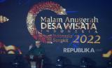 Menteri Pariwisata dan Ekonomi Kreatif Sandiaga Uno memberikan memberikan sambutan pada acara Malam Anugerah Desa Wisata Indonesia (ADWI) 2022 di Gedung Sapta Pesona, Jakarta, Ahad (30/10/2022). ADWI 2022 merupakan penganugerahan kepada desa wisata-desa wisata terpilih sebagai bentuk apresiasi atas keberhasilan mereka dalam mengembangkan Desa Wisata yang berkelanjutan, berdaya saing global, dan berkelas dunia. (FOTO : Republika/Prayogi)