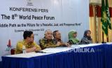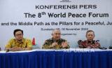REPUBLIKA.CO.ID, JAKARTA -- Ketua Forum Perdamaian Dunia atau World Peace Forum (WPF) Din Syamsuddin (tengah), Anggota Pengarah Panitia (steering committee) Syafiq Mughni (kanan) bersama jajaran pengarah panitia lainnya