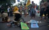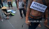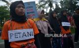 REPUBLIKA.CO.ID, JAKARTA -- Sejumlah pengunjuk rasa yang tergabung dalam Serikat Petani Indonesia (SPI) melakukan aksi di depan Kantor Kementerian Pertanian, Jakarta, Senin (31/10/2022).