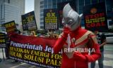 REPUBLIKA.CO.ID,JAKARTA -- Sejumlah aktivis lingkungan hidup Walhi melakukan aksi di depan Kantor Kedutaan Besar Jepang, Jakarta, Selasa (1/11/2022).