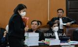 Terdakwa kasus dugaan pembunuhan berencana terhadap Brigadir Nofriansyah Yosua Hutabarat alias Brigadir J, Putri Candrawathi bersiap menjalani sidang lanjutan di Pengadilan Negeri Jakarta Selatan, Jakarta, Selasa (1/11/2022). Sidang tersebut beragendakan mendengarkan keterangan sejumlah saksi. Jaksa penuntut umum (JPU) menghadirkan sebanyak 12 saksi dari keluarga Brigadir yakni Samuel Hutabarat, Rosti Simanjuntak, Mahareza Rizky, Yuni Artika hutabarat, Devianita Hutabarat, Novitasari Nadea, Rohani Simanjuntak, Sanggah Parulian, Rosline Emika Simanjuntak, Indrawanto Pasaribu, pengacara keluarga Kamarudin Simanjuntak dan kekasihnya Brigadir J Vera Mareta Simanjuntak. Republika/Thoudy Badai (FOTO : Republika/Thoudy Badai)