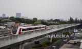 REPUBLIKA.CO.ID, JAKARTA -- Rangkaian kereta LRT melintas di kawasan Rawamangun, Jakarta, Selasa (1/11/2022).