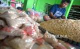 Pengerajin mengemas kedelai di pabrik tempe Muchlar, Bantul, Yogyakarta, Rabu (2/11/2022). Mahalnya harga kedelai di kisaran Rp 14 ribu hingga Rp 15 ribu membuat pengerajin tempe memutar otak. Memperkecil ukuran tempe menjadi pilihan menghindari menaikkan harga tempe ke konsumen. Hal ini masih ditambah dengan turunnya daya beli tempe oleh masyarakat. (FOTO : Republika/Wihdan Hidayat)