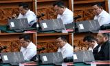 Foto kolase ekspresi terdakwa kasus dugaan pembunuhan berencana terhadap Brigadir Nofriansyah Yosua Hutabarat alias Brigadir J, Kuat Maruf saat menjalani sidang lanjutan di Pengadilan Negeri Jakarta Selatan, Jakarta, Rabu (2/11/2022). Sidang tersebut beragendakan mendengarkan keterangan saksi yang dihadirkan oleh jaksa penuntut umum (JPU) dengan terdakwa Ricky Rizal dan Kuat Maruf. Saksi yang dihadirkan merupakan anggota keluarga dari Brigadir J, diantaranya Samuel Hutabarat, Rosti Simanjuntak, Mahareza Rizky, Yuni Artika Hutabarat, Devianita Hutabarat, Novitasari Nadea, Rohani Simanjuntak, Sangga Parulian, Roslin Emika Simanjuntak, Indrawanto Pasaribu, dan kekasih Brigadir J, Vera Mareta Simanjuntak. Dalam keterangannya, orang tua Brigadir J, Rosti Simanjuntak meminta terdakwa Ricky Rizal dan Kuat Maruf tidak hanya meminta maaf, namun harus disertai keterangan yang jujur dalam persidangan kasus pembunuhan terhadap anaknya. Republika/Thoudy Badai (FOTO : Republika/Thoudy Badai)