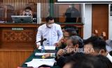 Terdakwa kasus dugaan pembunuhan berencana terhadap Brigadir Nofriansyah Yosua Hutabarat alias Brigadir J, Kuat Maruf (kiri) mendengarkan keterangan saksi saat menjalani sidang lanjutan di Pengadilan Negeri Jakarta Selatan, Jakarta, Rabu (2/11/2022). Sidang tersebut beragendakan mendengarkan keterangan saksi yang dihadirkan oleh jaksa penuntut umum (JPU) dengan terdakwa Ricky Rizal dan Kuat Maruf. Saksi yang dihadirkan merupakan anggota keluarga dari Brigadir J, diantaranya Samuel Hutabarat, Rosti Simanjuntak, Mahareza Rizky, Yuni Artika Hutabarat, Devianita Hutabarat, Novitasari Nadea, Rohani Simanjuntak, Sangga Parulian, Roslin Emika Simanjuntak, Indrawanto Pasaribu, dan kekasih Brigadir J, Vera Mareta Simanjuntak. Dalam keterangannya, orang tua Brigadir J, Rosti Simanjuntak meminta terdakwa Ricky Rizal dan Kuat Maruf tidak hanya meminta maaf, namun harus disertai keterangan yang jujur dalam persidangan kasus pembunuhan terhadap anaknya. Republika/Thoudy Badai (FOTO : Republika/Thoudy Badai)