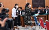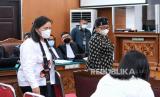 Orang tua Brigadir Nofriansyah Yosua Hutabarat alias Brigadir J, Rosti Simanjuntak (kanan) bersiap memberikan keterangan saksi dalam sidang kasus dugaan pembunuhan berencana terhadap Brigadir J, dengan terdakwa Ricky Rizal dan Kuat Maruf  di Pengadilan Negeri Jakarta Selatan, Jakarta, Rabu (2/11/2022). Sidang tersebut beragendakan mendengarkan keterangan saksi yang dihadirkan oleh jaksa penuntut umum (JPU). Saksi yang dihadirkan merupakan anggota keluarga dari Brigadir J, diantaranya Samuel Hutabarat, Rosti Simanjuntak, Mahareza Rizky, Yuni Artika Hutabarat, Devianita Hutabarat, Novitasari Nadea, Rohani Simanjuntak, Sangga Parulian, Roslin Emika Simanjuntak, Indrawanto Pasaribu, dan kekasih Brigadir J, Vera Mareta Simanjuntak. Dalam keterangannya, orang tua Brigadir J, Rosti Simanjuntak meminta terdakwa Ricky Rizal dan Kuat Maruf tidak hanya meminta maaf, namun harus disertai keterangan yang jujur dalam persidangan kasus pembunuhan terhadap anaknya. Republika/Thoudy Badai (FOTO : Republika/Thoudy Badai)