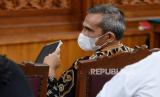 Orang tua Brigadir Nofriansyah Yosua Hutabarat alias Brigadir J, Samuel Hutabarat memberikan keterangan saksi dalam sidang kasus dugaan pembunuhan berencana terhadap Brigadir J, dengan terdakwa Ricky Rizal dan Kuat Maruf  di Pengadilan Negeri Jakarta Selatan, Jakarta, Rabu (2/11/2022). Sidang tersebut beragendakan mendengarkan keterangan saksi yang dihadirkan oleh jaksa penuntut umum (JPU). Saksi yang dihadirkan merupakan anggota keluarga dari Brigadir J, diantaranya Samuel Hutabarat, Rosti Simanjuntak, Mahareza Rizky, Yuni Artika Hutabarat, Devianita Hutabarat, Novitasari Nadea, Rohani Simanjuntak, Sangga Parulian, Roslin Emika Simanjuntak, Indrawanto Pasaribu, dan kekasih Brigadir J, Vera Mareta Simanjuntak. Dalam keterangannya, orang tua Brigadir J, Rosti Simanjuntak meminta terdakwa Ricky Rizal dan Kuat Maruf tidak hanya meminta maaf, namun harus disertai keterangan yang jujur dalam persidangan kasus pembunuhan terhadap anaknya.   (FOTO : Republika/Thoudy Badai)