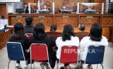 Saksi membacakan sumpah sebelum memberikan keterangan dalam sidang kasus dugaan pembunuhan berencana terhadap Brigadir J, dengan terdakwa Ricky Rizal dan Kuat Maruf  di Pengadilan Negeri Jakarta Selatan, Jakarta, Rabu (2/11/2022). Sidang tersebut beragendakan mendengarkan keterangan saksi yang dihadirkan oleh jaksa penuntut umum (JPU). Saksi yang dihadirkan merupakan anggota keluarga dari Brigadir J, diantaranya Samuel Hutabarat, Rosti Simanjuntak, Mahareza Rizky, Yuni Artika Hutabarat, Devianita Hutabarat, Novitasari Nadea, Rohani Simanjuntak, Sangga Parulian, Roslin Emika Simanjuntak, Indrawanto Pasaribu, dan kekasih Brigadir J, Vera Mareta Simanjuntak. Dalam keterangannya, orang tua Brigadir J, Rosti Simanjuntak meminta terdakwa Ricky Rizal dan Kuat Maruf tidak hanya meminta maaf, namun harus disertai keterangan yang jujur dalam persidangan kasus pembunuhan terhadap anaknya. Republika/Thoudy Badai (FOTO : Republika/Thoudy Badai)