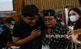 Orang tua Brigadir Nofriansyah Yosua Hutabarat alias Brigadir J, Rosti Simanjuntak (kanan) bersama adik kandung Brigadir J Mahareza Rizky (kiri) seusai memberikan keterangan saksi dalam sidang kasus dugaan pembunuhan berencana terhadap Brigadir J, dengan terdakwa Ricky Rizal dan Kuat Maruf  di Pengadilan Negeri Jakarta Selatan, Jakarta, Rabu (2/11/2022). Sidang tersebut beragendakan mendengarkan keterangan saksi yang dihadirkan oleh jaksa penuntut umum (JPU). Saksi yang dihadirkan merupakan anggota keluarga dari Brigadir J, diantaranya Samuel Hutabarat, Rosti Simanjuntak, Mahareza Rizky, Yuni Artika Hutabarat, Devianita Hutabarat, Novitasari Nadea, Rohani Simanjuntak, Sangga Parulian, Roslin Emika Simanjuntak, Indrawanto Pasaribu, dan kekasih Brigadir J, Vera Mareta Simanjuntak. Dalam keterangannya, orang tua Brigadir J, Rosti Simanjuntak meminta terdakwa Ricky Rizal dan Kuat Maruf tidak hanya meminta maaf, namun harus disertai keterangan yang jujur dalam persidangan kasus pembunuhan terhadap anaknya. Republika/Thoudy Badai (FOTO : Republika/Thoudy Badai)