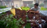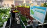 Pegawai mengontrol tanaman sayuran hidroponik di Dewa Ponik, Yogyakarta, Rabu (2/11/2022). Tidak tersedianya lahan tidak menjadi halangan untuk memulai usaha budidaya sayuran secara hidroponik. Hasil budidaya sayuran hidroponik memasok ke restoran, toko sayur, dan supermarket. Selain itu, kebun hidroponik juga menjadi sarana edukasi bagi pelajar dan masyarakat. (FOTO : Republika/Wihdan Hidayat)