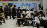 Para pencari kerja memadati booth lowongan kerja saat Job Fair 2022 yang digelar Dinas Ketenagakerjaan (Disnaker) Kota Bandung, di Festival Citylink, Kota Bandung, Rabu (2/11). Job Fair berlangsung dua hari sejak 2 hingga 3 November 2022. Sebunyak 40 perusahaan hadir dalam acara tersebut, dengan 4.000 lowongan kerja (loker) yang bisa diikuti oleh para pencari kerja. (FOTO : Edi Yusuf/Republika)