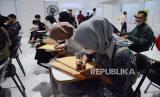 Para pencari kerja mempersiapkan berkas lamaran saat pembukaan Job Fair 2022 yang digelar Dinas Ketenagakerjaan (Disnaker) Kota Bandung, di Festival Citylink, Kota Bandung, Rabu (2/11). Job Fair berlangsung dua hari sejak 2 hingga 3 November 2022. Sebunyak 40 perusahaan hadir dalam acara tersebut, dengan 4.000 lowongan kerja (loker) yang bisa diikuti oleh para pencari kerja. (FOTO : Edi Yusuf/Republika)