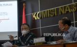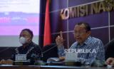 REPUBLIKA.CO.ID, JAKARTA -- Komisioner Komnas HAM Mohammad Choirul Anam menunjukan potongan video saat memberikan keterangan pers terkait penyampaian hasil pemantauan dan penyelidikan Komnas HAM atas Tragedi Kemanusiaan Stadion Kanjuruhan di Kantor Komnas HAM, Jakarta, Rabu (2/11/2022).