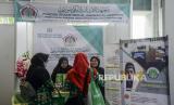 REPUBLIKA.CO.ID,JAKARTA -- Petugas memberikan penjelasan kepada pengunjung pada acara Jakarta Islamic Education Fair di Jakarta Islamic Center, Jakarta, Kamis (3/11/2022).