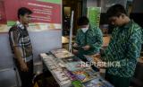 Pelajar melihat majalah pada Jakarta Islamic Education Fair di Jakarta Islamic Center, Jakarta, Kamis (3/11/2022). Jakarta Islamic Center menggelar pekan raya pendidikan Islam Jakarta atau Jakarta Islamic Education Fair bertajuk Transformasi Digital Pendidikan Islam yang dilaksanakan hingga tanggal 5 November 2022. Republika/Putra M. Akbar (FOTO : Republika/Putra M. Akbar)