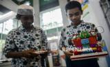 Pelajar mencoba mainan robot edukasi pada Jakarta Islamic Education Fair di Jakarta Islamic Center, Jakarta, Kamis (3/11/2022). Jakarta Islamic Center menggelar pekan raya pendidikan Islam Jakarta atau Jakarta Islamic Education Fair bertajuk Transformasi Digital Pendidikan Islam yang dilaksanakan hingga tanggal 5 November 2022. Republika/Putra M. Akbar (FOTO : Republika/Putra M. Akbar)