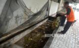 Petugas memberi pakan maggot dari sampah makanan di Tempat Pengolahan Sampah (TPS) Reduce, Reuse, Recycle (3R) Nitikan, Yogyakarta, Kamis (3/11/2022). Di TPS 3R sampah dari warga dipilah terlebih dahulu sebelum dikirim ke TPST Piyungan. Rencananya Pemkot Yogyakarta akan menambah TPS di Nitikan untuk pengolahan sampah yang dampaknya akan mengurangi pembuangan sampah ke TPST Piyungan. Nantinya diharapkan dengan adanya TPS Nitikan 1 dan TPS Nitikan 2 dapat mengurangi sampah hingga 80 ton setiap harinya. (FOTO : Republika/Wihdan Hidayat)